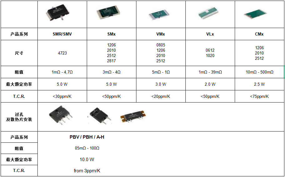 ISA-PLAN工艺金属合金箔膜电阻系列:表面贴装VMx系列,VLx系列、CMx系列、SMx系列 ,SMV系列
